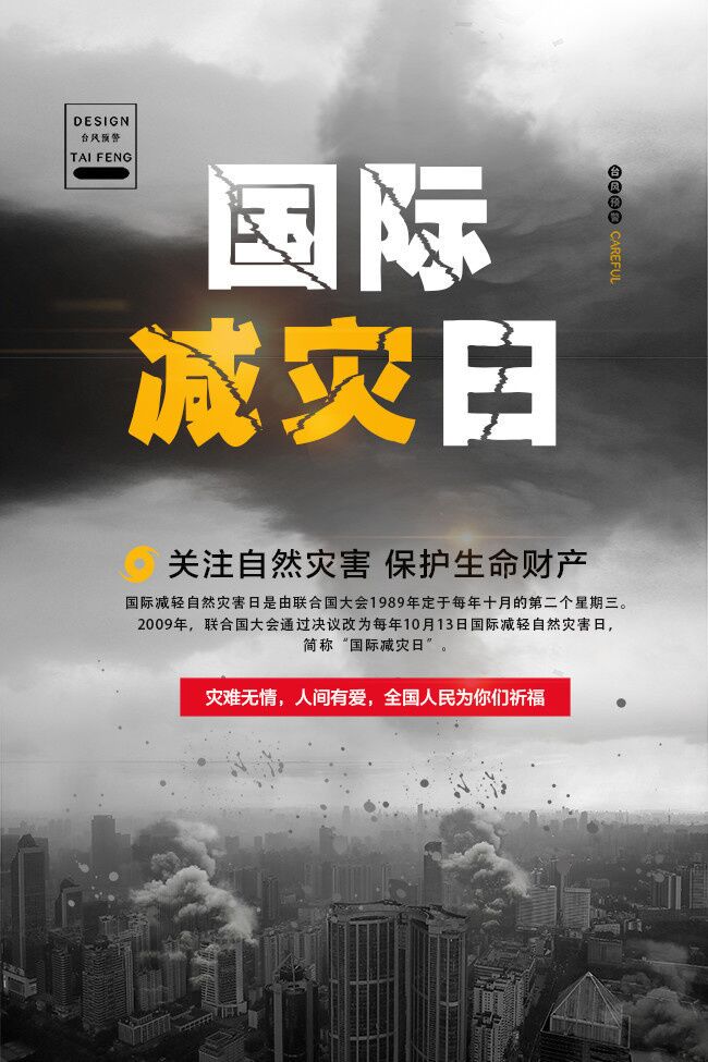 今年10月13日是第31個國際減災(zāi)日,主題是“提高災(zāi)害風(fēng)險治理能力”,強(qiáng)調(diào)加強(qiáng)災(zāi)害風(fēng)險管理,建立完善政府主導(dǎo)、社會參與的災(zāi)害風(fēng)險治理機(jī)制,特別是通過制定和實施有利于減輕災(zāi)害風(fēng)險的各項政策措施,不斷提高全社會災(zāi)害風(fēng)險治理能力。“國際減災(zāi)日”。一般是指減輕由潛在的自然災(zāi)害可能造成對社會及環(huán)境影響的程度,即最大限度地減少人員傷亡和財產(chǎn)損失,使公眾的社會和經(jīng)濟(jì)結(jié)構(gòu)在災(zāi)害中受到的破壞得以減輕到最低程度。