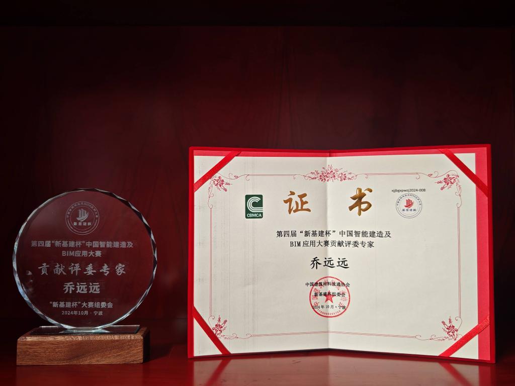 近日,中國建筑材料流通協會及全國“新基建杯”大賽組委會根據《“新基建杯”中國智能建造及BIM應用大賽評委管理辦法》規定,通過綜合考核,評選出22位第四屆“新基建杯”中國智能建造及BIM應用大賽“貢獻評委專家”,工程建設公司職工喬遠遠榜上有名,獲此殊榮。