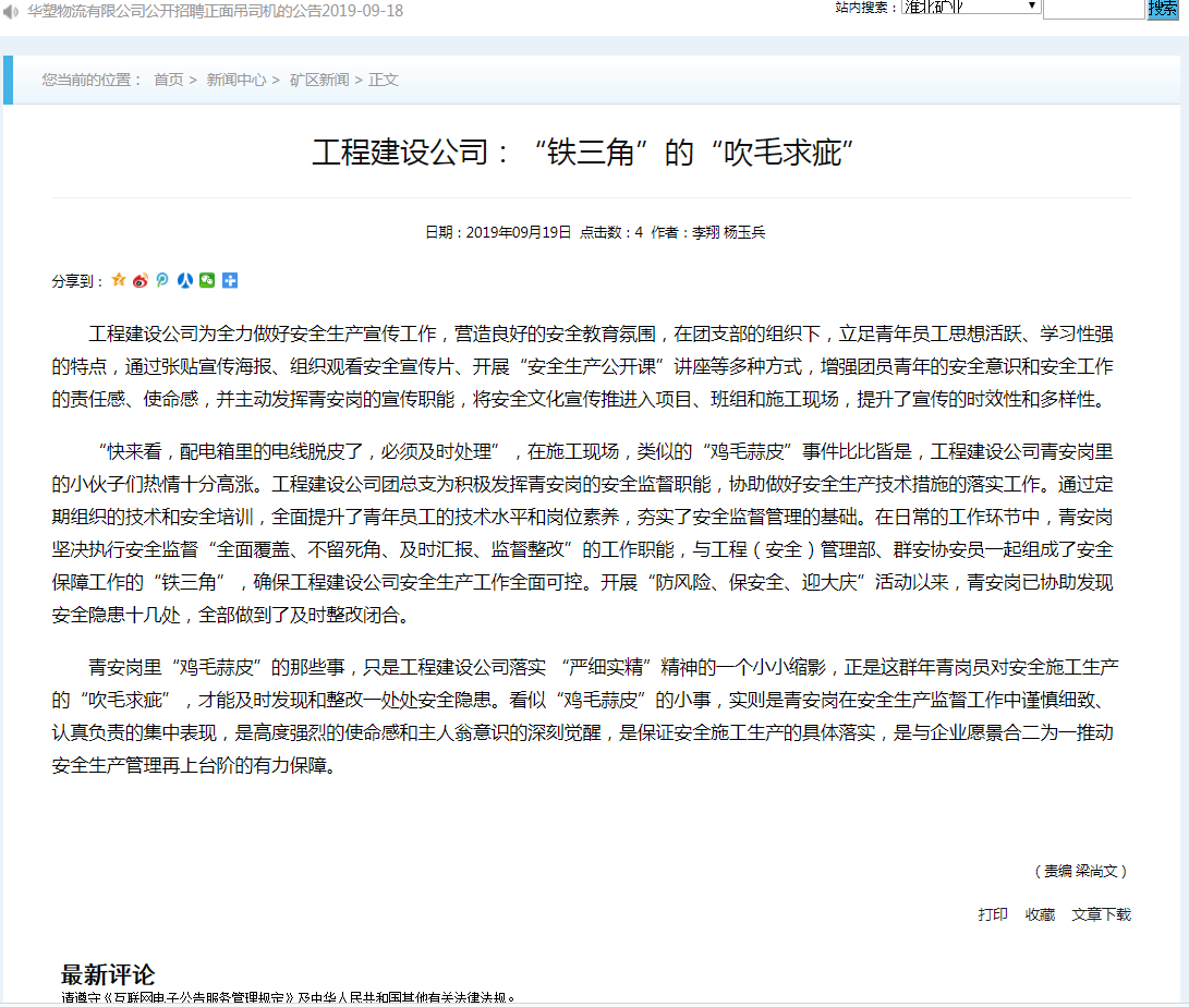 【版權歸淮北礦業集團工程建設公司所有,未經許可不得轉載】