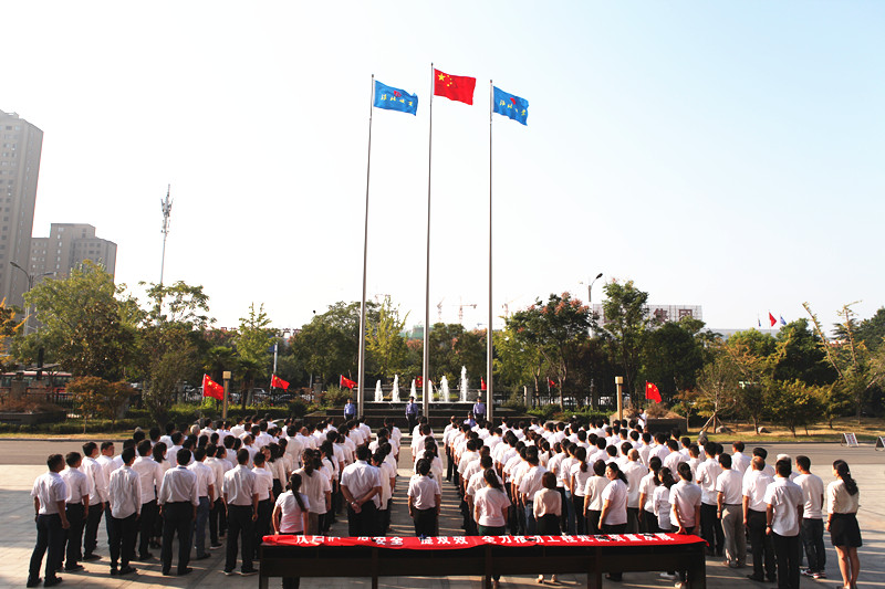 升國旗儀式簡短而莊嚴,在高昂的國歌聲中,鮮艷的五星紅旗冉冉升起,在晨風中高高飄揚,參加儀式的全體干部職工莊嚴肅立,向國旗行注目禮、唱國歌。注視著五星紅旗冉冉升起。在《淮北礦業之歌》激昂的旋律中,伴隨著初升的太陽,淮北礦業旗幟冉冉升起,也在我們每個人的心中燃起了一份自豪感、使命感和歸屬感。