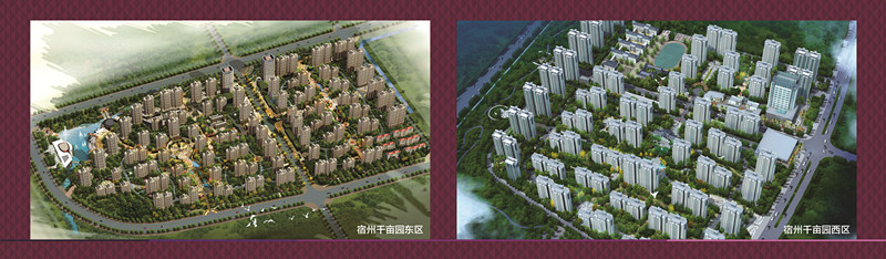 宿州千畝園項目坐擁宿州門戶,交通十分便利,為宿州市重點建設工程。項目合計建設規劃用地約1200 畝,住宅建筑面積180 萬㎡,商業建筑面積19 萬㎡,可容納15000 戶、5 萬人居住。金色家園位于宿蒙路以東,南外環以北,迎賓大道南側,約700 畝;凱旋百年緊鄰高速出口北側,拂曉大道以西,淮河西路以南,約500 畝。宿州居住園總體規劃分四期實施,目前項目一期、二期已建成并交付業主使用。