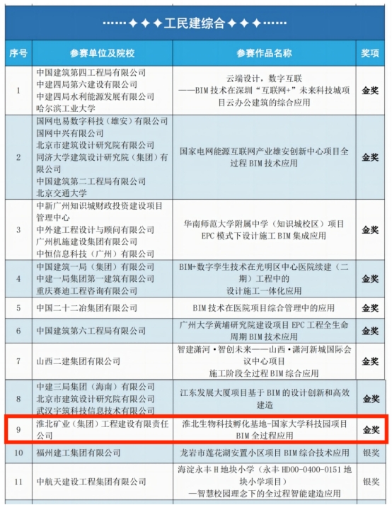 近日,2023年第六屆“優(yōu)路杯”全國(guó)BIM技術(shù)大賽公布了評(píng)獎(jiǎng)結(jié)果,工程建設(shè)公司參賽作品《淮北生物科技孵化基地-國(guó)家大學(xué)科技園項(xiàng)目BIM 全過(guò)程應(yīng)用》獲得全國(guó)金獎(jiǎng),這是該公司第一次榮獲此類獎(jiǎng)項(xiàng),同時(shí)也是安徽省唯一一家獲得金獎(jiǎng)的省屬施工企業(yè)。