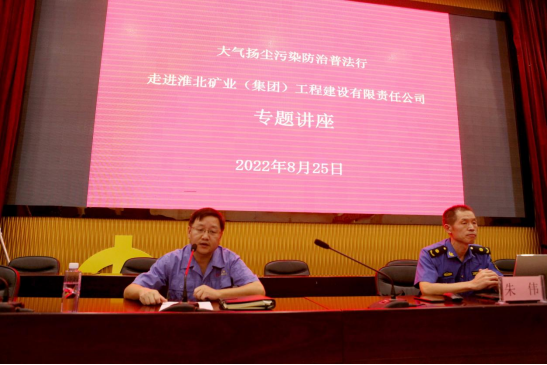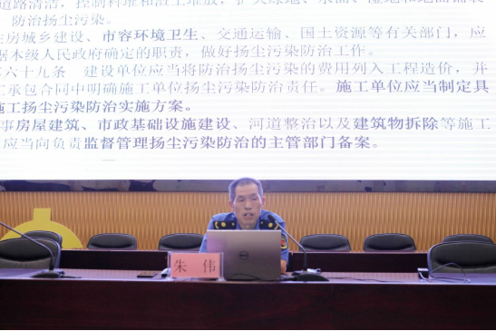 普法講座結合《中華人民共和國大氣污染防治法》、《安徽省大氣污染防治條例》從現場施工的角度為大家講授了大氣污染防治方面法律知識、噪聲污染防治方面相關規定、建筑垃圾管理方面相關規定,并通過介紹兩起環保處罰案例,深入淺出地講解揚塵污染的危害。