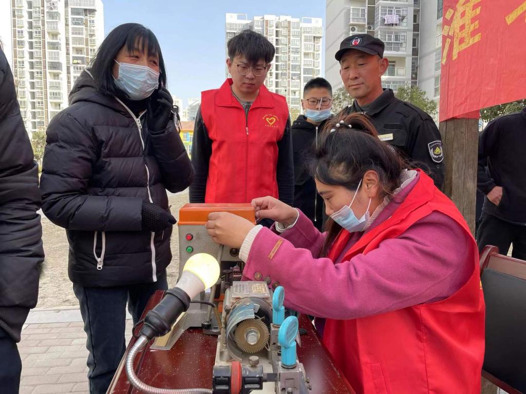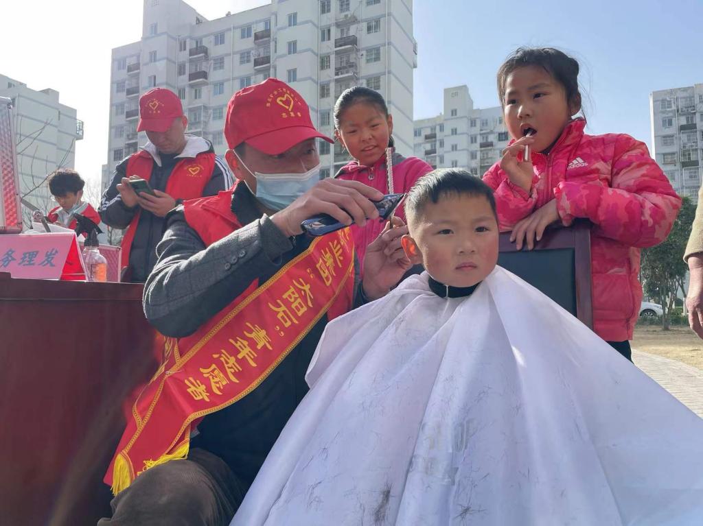 此次活動共設置義務理發(fā)、健康義診、配鑰匙、電腦維修、家政服務等6個項目,活動現場人頭攢動,氣氛十分熱烈。“太陽石”青年志愿服務隊的青年志愿者們穿著紅馬甲、帶著紅袖章用辛勤付出換來社區(qū)居民微笑,用實際行動踐行雷鋒精神。